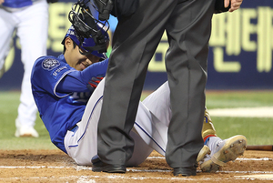 [스포티비뉴스=잠실, 곽혜미 기자] 2025 신한 SOL Bank KBO리그 LG 트윈스와 삼성 라이온즈의 경기가 15일 오후 서울 송파구 잠실야구장에서 열렸다. 6회초 2사 삼성 이재현이 팔꿈치에 사구를 맞은 후 고통스러워하고 있다.