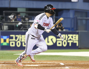 [스포티비뉴스=잠실, 곽혜미 기자] 2025 신한 SOL Bank KBO리그 LG 트윈스와 삼성 라이온즈의 경기가 15일 오후 서울 송파구 잠실야구장에서 열렸다. 6회말 1사 LG 문보경이 안타를 날리고 있다.