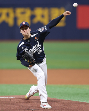 [스포티비뉴스=고척, 곽혜미 기자] 2025 신한 SOL Bank KBO리그 키움 히어로즈와 두산 베어스의 경기가 22일 오후 서울 구로구 고척스카이돔에서 열렸다. 두산 선발 최승용이 역투하고 있다.
