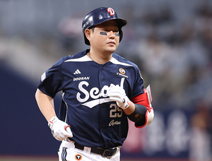 [스포티비뉴스=고척, 곽혜미 기자] 2025 신한 SOL Bank KBO리그 키움 히어로즈와 두산 베어스의 경기가 22일 오후 서울 구로구 고척스카이돔에서 열렸다. 9회초 1사 1루 상황에서 두산 양의지가 투런포를 날리고 있다.