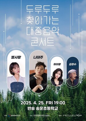 [스포티비뉴스=김원겸 기자]㈔한국대중음악공연산업협회(이하 음공협)가 주관하는 ‘두루두루 찾아가는 대중음악 콘서트’가 오는 4월 25일 부산 해운대구 송운초등학교 특설무대에서 진행된다.