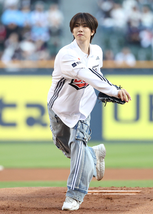 [스포티비뉴스=잠실, 곽혜미 기자] 2025 신한 SOL Bank KBO리그 두산 베어스와 롯데 자이언츠의 경기가 25일 오후 서울 송파구 잠실야구장에서 열렸다. 크래비티 원진이 시구를 하고 있다.