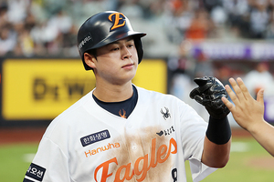 [스포티비뉴스=대전, 곽혜미 기자] 2025 신한 SOL Bank KBO리그 한화 이글스와 LG 트윈스의 경기가 30일 오후 대전 한화생명 볼파크에서 열렸다. 2회말 1사 1,3루 한화 이도윤의 땅볼 때 득점에 성공한 노시환이 하이파이브를 하고 있다.