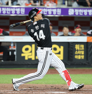 [스포티비뉴스=대전, 곽혜미 기자] 2025 신한 SOL Bank KBO리그 한화 이글스와 LG 트윈스의 경기가 30일 오후 대전 한화생명 볼파크에서 열렸다. 3회초 1사 LG 송찬의가 2루타를 날리고 있다.