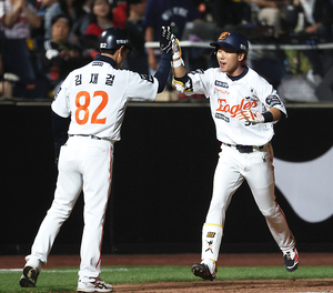 [스포티비뉴스=대전, 곽혜미 기자] 2025 신한 SOL Bank KBO리그 한화 이글스와 LG 트윈스의 경기가 30일 오후 대전 한화생명 볼파크에서 열렸다. 7회초 1사 2루 상황에서 한화 황영묵이 역전 투런포를 날리고 있다.