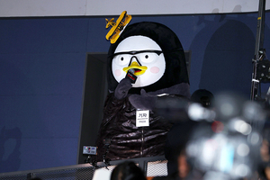 [스포티비뉴스=서울, 곽혜미 기자] 영화 '미션 임파서블: 파이널 레코닝' 프레스 컨퍼런스가 8일 오후 서울 송파구 신천동 롯데시네마 월드타워점에서 열렸다. 펭수가 질문을 하고 있다.
