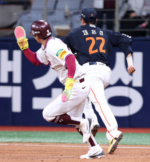 [스포티비뉴스=고척, 곽혜미 기자] 2025 신한 SOL Bank KBO리그 키움 히어로즈와 한화 이글스의 경기가 9일 오후 서울 구로구 고척스카이돔에서 열렸다. 3회말 1사 1루 키움 카디네스의 타석 때 나온 한화 선발 엄상백의 송구 실책애 1루 주자 이주형이 3루까지 진루했다.