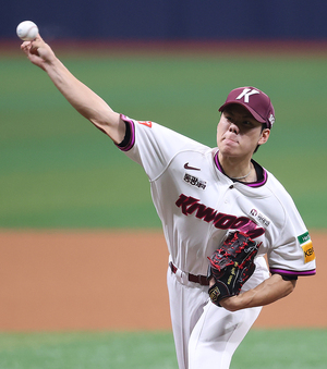 [스포티비뉴스=고척, 곽혜미 기자] 2025 신한 SOL Bank KBO리그 키움 히어로즈와 한화 이글스의 경기가 11일 오후 서울 구로구 고척스카이돔에서 열렸다. 키움 선발 김윤하가 역투하고 있다.