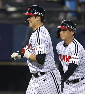 [스포티비뉴스=잠실, 곽혜미 기자] 2025 신한 SOL Bank KBO리그 LG 트윈스와 키움 히어로즈의 경기가 13일 오후 서울 송파구 잠실야구장에서 열렸다. 4회말 2사 1루 상황에서 LG 홍창기가 투런포를 날리고 기뻐하고 있다.