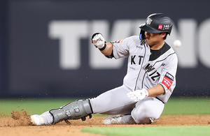 [스포티비뉴스=수원, 곽혜미 기자] 2025 신한 SOL Bank KBO리그 KT 위즈와 KIA 타이거즈의 경기가 20일 오후 수원 KT위즈파크에서 열렸다. 5회말 2사 2루 상황에서 KT 강백호가 1타점 적시타를 날리고 있다.