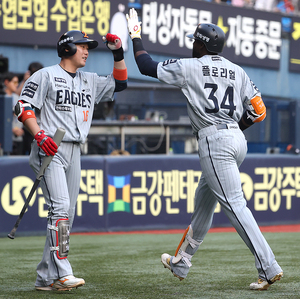 [스포티비뉴스=잠실, 곽혜미 기자] 2025 신한 SOL Bank KBO리그 LG 트윈스와 한화 이글스의 경기가 28일 오후 서울 송파구 잠실야구장에서 열렸다. 1회초 선두타자로 나선 한화 플로리얼이 선취 솔로포를 날리고 하주석과 기쁨을 나누고 있다.