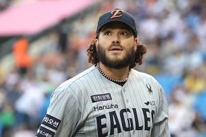 [스포티비뉴스=잠실, 곽혜미 기자] 2025 신한 SOL Bank KBO리그 LG 트윈스와 한화 이글스의 경기가 28일 오후 서울 송파구 잠실야구장에서 열렸다. 3회말 이닝 종료 후 한화 폰세가 관중석을 바라보고 있다.