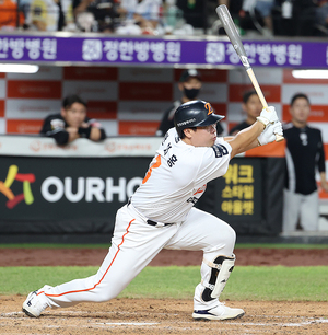 [스포티비뉴스=대전, 곽혜미 기자] 2025 신한 SOL Bank KBO리그 한화 이글스와 KT 위즈의 경기가 7일 오후 대전 한화생명 볼파크에서 열렸다. 4회말 2사 2,3루 상황에서 한화 안치홍이 선취 2타점 적시타를 날리고 있다.