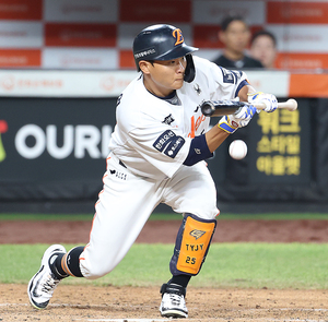 [스포티비뉴스=대전, 곽혜미 기자] 2025 신한 SOL Bank KBO리그 한화 이글스와 KT 위즈의 경기가 7일 오후 대전 한화생명 볼파크에서 열렸다. 5회말 무사 1루 상황에서 한화 김태연이 희생번트를 성공시키고 있다.
