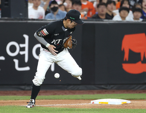 [스포티비뉴스=대전, 곽혜미 기자] 2025 신한 SOL Bank KBO리그 한화 이글스와 KT 위즈의 경기가 7일 오후 대전 한화생명 볼파크에서 열렸다. 6회말 KT 3루수 허경민이 한화 노시환의 땅볼 타구를 잡지 못하고 있다.