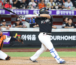 [스포티비뉴스=대전, 곽혜미 기자] 2025 신한 SOL Bank KBO리그 한화 이글스와 KT 위즈의 경기가 7일 오후 대전 한화생명 볼파크에서 열렸다. 9회초 1사 2루 상황에서 KT 강백호가 역전 투런포를 날리고 있다.