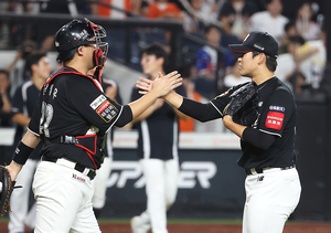 [스포티비뉴스=대전, 곽혜미 기자] 2025 신한 SOL Bank KBO리그 한화 이글스와 KT 위즈의 경기가 7일 오후 대전 한화생명 볼파크에서 열렸다. 5-4 한 점 차 승리를 지킨 한화 박영현, 장성우가 하이파이브를 하고 있다.