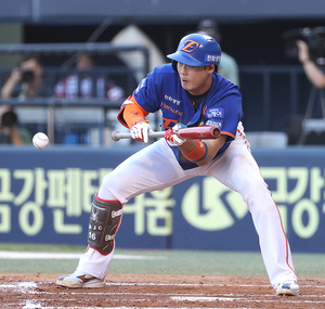 [스포티비뉴스=잠실, 곽혜미 기자] 2025 신한 SOL Bank KBO리그 LG 트윈스와 한화 이글스의 경기가 10일 오후 서울 송파구 잠실야구장에서 열렸다. 3회초 무사 1,2루 상황에서 한화 하주석이 희생번트를 성공하고 있다.