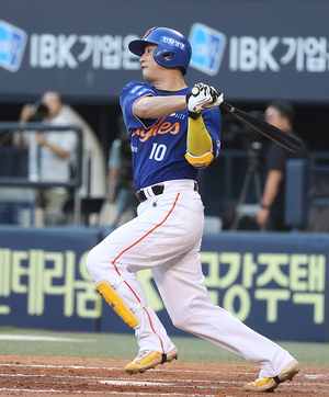 [스포티비뉴스=잠실, 곽혜미 기자] 2025 신한 SOL Bank KBO리그 LG 트윈스와 한화 이글스의 경기가 10일 오후 서울 송파구 잠실야구장에서 열렸다. 4회초 2사 2루 상황에서 한화 이진영이 안타를 날리고 있다.