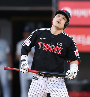 [스포티비뉴스=수원, 곽혜미 기자] 2025 신한 SOL Bank KBO리그 KT 위즈와 LG 트윈스의 경기가 12일 오후 수원 KT위즈파크에서 열렸다. 3회초 선두타자로 나선 LG 박동원이 삼진을 당한 후 아쉬워하고 있다.