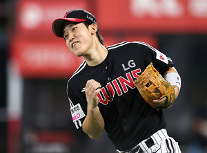[스포티비뉴스=수원, 곽혜미 기자] 2025 신한 SOL Bank KBO리그 KT 위즈와 LG 트윈스의 경기가 12일 오후 수원 KT위즈파크에서 열렸다. 7회말 1사 KT 허경민의 바운드성 땅볼 타구를 잡아 1루로 송구한 LG 3루수 구본혁이 기뻐하고 있다.