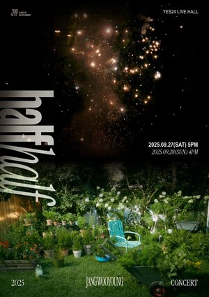 소속사는 13일 공식 SNS 채널에 공개한 '하프 하프' 포스터는 낮과 밤의 상반된 분위기가 한데 담겼다. 푸른 잔디와 화분으로 가득 찬 낮의 정원 위로 화려한 불꽃놀이가 터지는 밤의 하늘이 펼쳐져 있다. 공연명 '하프 하프'는 감각적이고 에너지 넘치는 퍼포먼스부터 섬세하고 완성도 높은 사운드 중심의 무대까지 아티스트 장우영의 음악적 매력을 온전히 보여주겠다는 의미를 담고 있다.