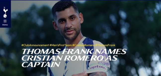 프랭크 감독은 파리 생제르맹전을 하루 앞둔 기자회견에서 “로메로와 좋은 대화를 나눴다. 그는 주장이 된 것에 매우 기뻐했고, 우리는 그가 올바른 자질을 갖췄다고 생각한다”고 말했다.