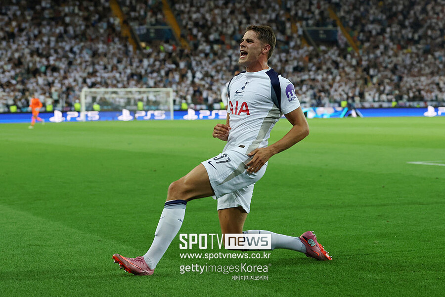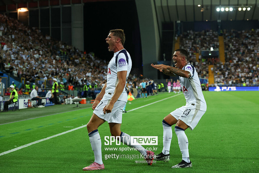 토트넘은 14일 오전 4시(이하 한국시간) 이탈리아 우디네의 스타디오 프리울리에서 열린 UEFA 슈퍼컵에서 PSG를 상대한다. 전반전이 끝난 지금, 토트넘이 미키 판더펜 선제골에 힘입어 PSG에 1-0으로 앞서 있다.