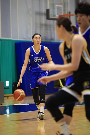 대표팀 일정을 마치고 돌아온 강유림은 소속팀 용인 삼성생명에서 새 시즌 준비에 한창이다. 15일 용인 STC(삼성트레이닝센터)에서 토카이대학(규슈)과 연습경기를 소화하며 몸 만들기에 한창이었다.