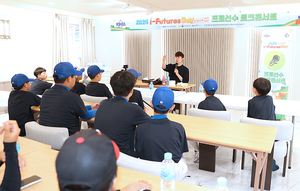 [스포티비뉴스=용산, 곽혜미 기자] 2025 야구 유청소년클럽리그 (i-league) i-futures day(야구 페스티벌)가 17일 서울 용산어린이정원에서 열렸다. 최금강 코치가 토크콘서트를 진행하고 있다.