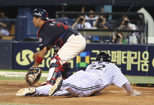 [스포티비뉴스=잠실, 곽혜미 기자] 2025 신한 SOL Bank KBO리그 LG 트윈스와 롯데 자이언츠의 경기가 19일 오후 서울 송파구 잠실야구장에서 열렸다. 4회말 2사 1루 LG 오지환의 적시타 때 1루 주자 김현수가 득점하고 있다.