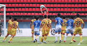 [스포티비뉴스=합천(경남), 곽혜미 기자] 제 20회 1,2학년 대학축구연맹전 황가람기 광주대와 단국대의 결승전이 31일 오후 경상남도 합천공설운동장에서 열렸다. 광주대 골키퍼 김범성이 골을 막아내고 있다.