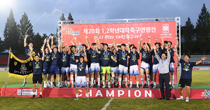 [스포티비뉴스=합천(경남), 곽혜미 기자] 제 20회 1,2학년 대학축구연맹전 황가람기 광주대와 단국대의 결승전이 31일 오후 경상남도 합천공설운동장에서 열렸다. 2-0으로 승리하며 우승을 거둔 단국대 박종관 감독과 선수들이 세리머니를 하고 있다.