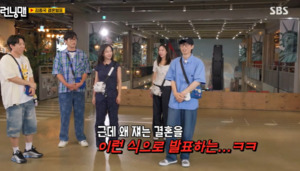 31일 방송된 SBS 예능 프로그램 '런닝맨'에서는 오프닝 촬영 전 김종국이 멤버들을 만나 결혼 소식을 전하는 장면이 등장했다. 유재석 역시 결혼 기사가 뜬 녹화 당일 사실을 알게 된 상황. 이에 멤버들은 잠시 김종국이 분장을 하러 간 사이, 당황한 기류를 고스란히 드러냈다.