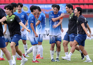 [스포티비뉴스=합천(경남), 곽혜미 기자] 제 20회 1,2학년 대학축구연맹전 황가람기 광주대와 단국대의 결승전이 31일 오후 경상남도 합천공설운동장에서 열렸다. 2-0으로 승리하며 우승을 거둔 단국대 선수들이 기뻐하고 있다.