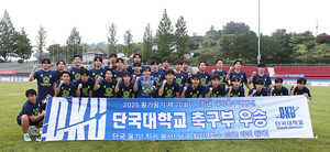 [스포티비뉴스=합천(경남), 곽혜미 기자] 제 20회 1,2학년 대학축구연맹전 황가람기 광주대와 단국대의 결승전이 31일 오후 경상남도 합천공설운동장에서 열렸다. 2-0으로 승리하며 우승을 거둔 단국대 선수들이 기념 촬영을 하고 있다.