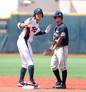 [스포티비뉴스=목동, 곽혜미 기자] KBSA 올스타와 U-18 대표팀의 연습 경기가 2일 오후 서울 양천구 목동야구장에서 열렸다. 2회말 2사 U-18 대표팀 박지호가 2루타를 날리고 있다.