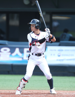 [스포티비뉴스=목동, 곽혜미 기자] KBSA 올스타와 U-18 대표팀의 연습 경기가 2일 오후 서울 양천구 목동야구장에서 열렸다. 3회말 U-18 대표팀 허윤이 선두타자로 타석에 들어섰다.