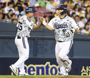 [스포티비뉴스=잠실, 곽혜미 기자] 2025 신한 SOL Bank KBO리그 두산 베어스와 LG 트윈스의 경기가 10일 오후 서울 송파구 잠실야구장에서 열렸다. 2회말 1사 2루 상황에서 두산 김기연이 선취 투런포를 날리고 있다.