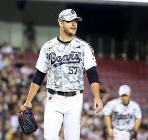 [스포티비뉴스=잠실, 곽혜미 기자] 2025 신한 SOL Bank KBO리그 두산 베어스와 LG 트윈스의 경기가 10일 오후 서울 송파구 잠실야구장에서 열렸다. 3회초 실점 없이 이닝을 마친 두산 콜어빈이 기뻐하고 있다.
