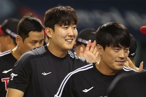 [스포티비뉴스=잠실, 곽혜미 기자] 2025 신한 SOL Bank KBO리그 두산 베어스와 LG 트윈스의 경기가 10일 오후 서울 송파구 잠실야구장에서 열렸다. 8-4로 승리한 LG 손주영이 미소를 짓고 있다.