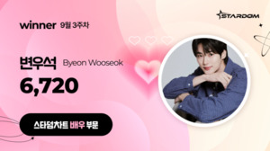 변우석은 집계기간 6720표를 얻어 정상에 올랐다. 김수현은 4832표로 2위를 차지했다. 3위는 64표를 얻은 이민호다.