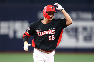 [스포티비뉴스=고척, 곽혜미 기자] 2025 신한 SOL Bank KBO리그 키움 히어로즈와 KIA 타이거즈의 경기가 24일 오후 서울 구로구 고척스카이돔에서 열렸다. 2회초 1사 KIA 오선우가 선취 솔로포를 날리고 있다.