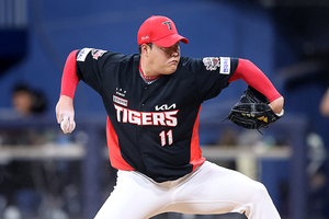[스포티비뉴스=고척, 곽혜미 기자] 2025 신한 SOL Bank KBO리그 키움 히어로즈와 KIA 타이거즈의 경기가 24일 오후 서울 구로구 고척스카이돔에서 열렸다. 8회말 KIA 조상우가 역투하고 있다.
