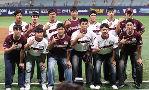 [스포티비뉴스=고척, 곽혜미 기자] 2025 신한 SOL Bank KBO리그 키움 히어로즈와 KIA 타이거즈의 경기가 24일 오후 서울 구로구 고척스카이돔에서 열렸다. 경기 종료 후 키움 신인 선수들이 기념 촬영을 하고 있다.