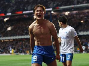 하지만 오현규 PK는 레인저스 골키퍼 잭 버틀랜드 손끝에 걸려 골망에 미동을 가하지 못했다. 원정 팬석에 탄식이 흘렀고 오현규는 고개를 떨궜다.