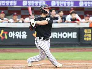 [스포티비뉴스=대전, 곽혜미 기자] 2025 신한 SOL Bank KBO리그 한화 이글스와 LG 트윈스의 경기가 27일 오후 대전 한화생명 볼파크에서 열렸다. 1회초 1사 1,2루 상황에서 LG 문성주가 1타점 적시타를 날리고 있다.