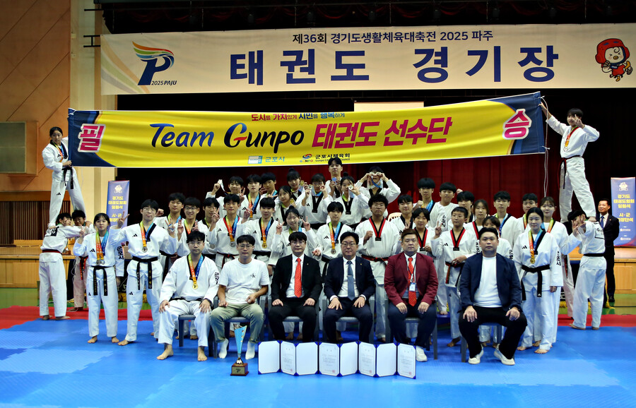 [스포티비뉴스=배정호 기자] 만여 경기도 생활체육 동호인들의 대축제인 제 36회 경기도생활체육대축전 2025 파주 2부 대회에서 군포시태권도협회가 종합우승을 차지하는 쾌거를 달성했다.