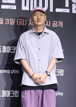 [스포티비뉴스=서울, 곽혜미 기자] 쿠팡플레이 '저스트 메이크업' 제작발표회가 1일 오후 서울 광진구 자양동 풀만 앰버서더 서울 이스트폴에서 열렸다. 심우진 PD가 포즈를 취하고 있다.