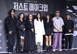 [스포티비뉴스=서울, 곽혜미 기자] 쿠팡플레이 '저스트 메이크업' 제작발표회가 1일 오후 서울 광진구 자양동 풀만 앰버서더 서울 이스트폴에서 열렸다. 이진수, 이사배, 정샘물, 이효리, 서옥, 심우진 PD, 박성환 PD가 포즈를 취하고 있다.